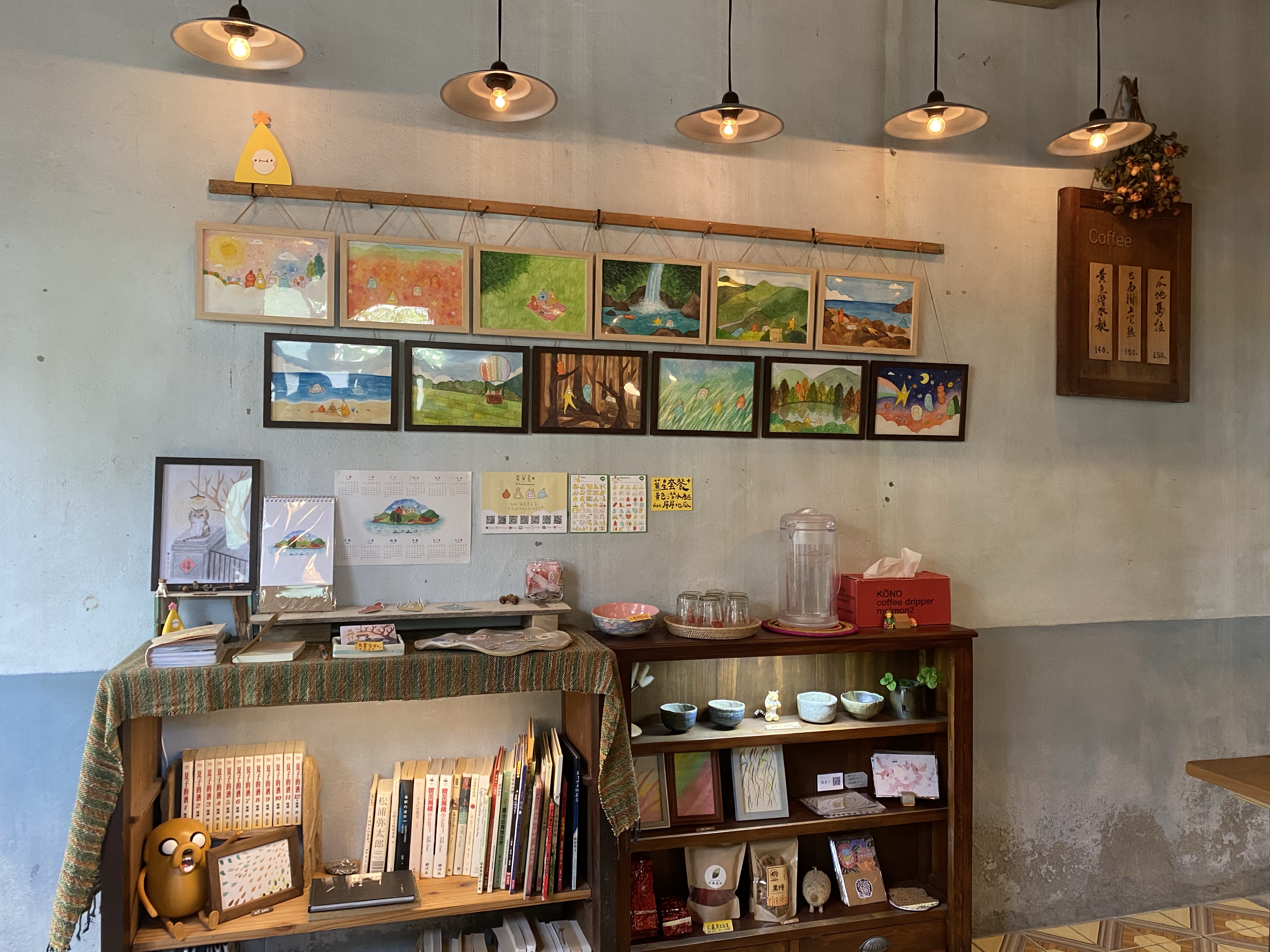 室內一進來有賣明信片、器皿,室內座位的部份有榻榻米還有吧台座位。