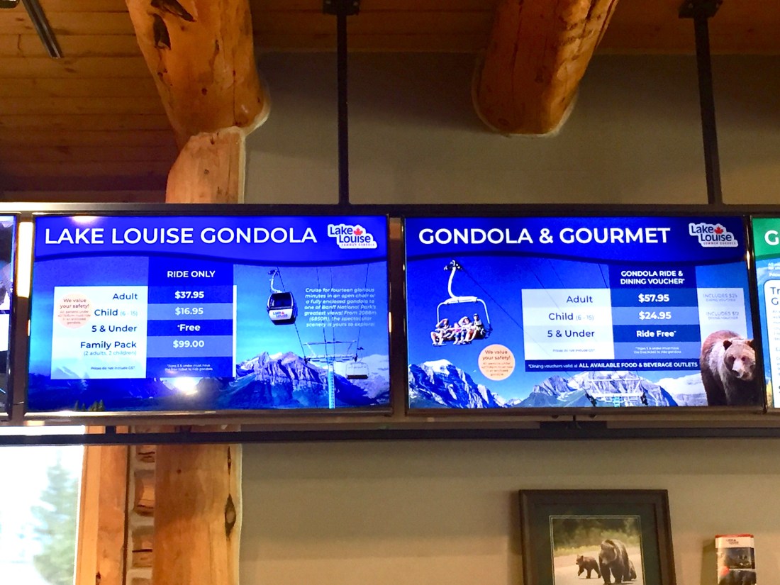 左邊是指單搭纜車來回一人是37.95加幣,大約是台幣856元;右邊則是來回加上晚餐是57.95加幣,大約是台幣1308元。