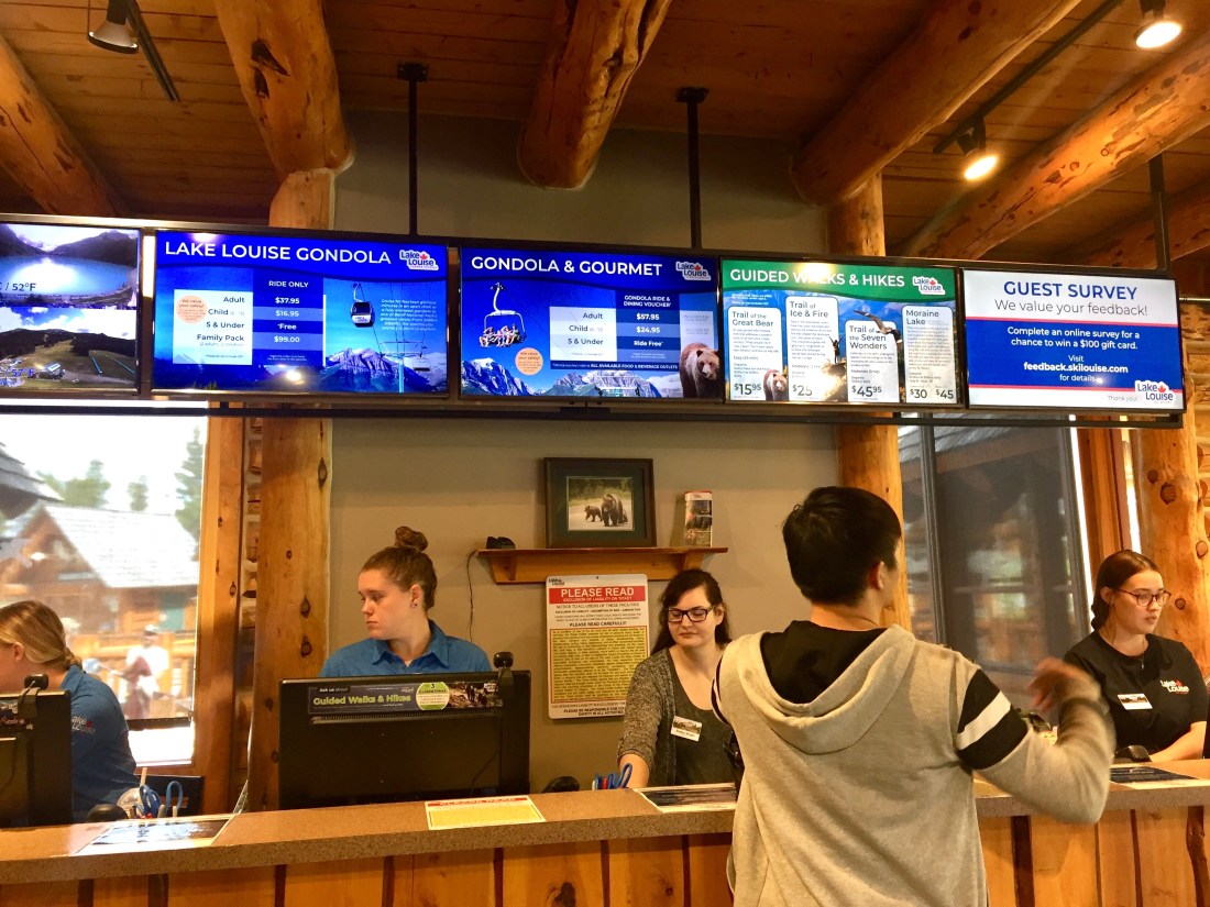 洛磯山脈我們總共搭了三趟纜車:Jasper skytram 、Banff sunshine Village 和Louise lake gondola。我跟水先生覺得三個纜車都各有特色可以看到的東西不一樣,但如果時間有限的話,依我們的體驗第一名推薦是Banff sunshine village,因為可以看到不同高度的植物,還有步道比較大,景色多元(湖景、山景、雪景)。第二名推薦是Jasper skytram 纜車到達的海拔比較高,可以眺望整個Jasper 和洛磯山脈,但是步道比較多碎石難爬行。第三名推薦是Louise lake gondola,相對另外兩個纜車比較觀光,海拔沒有那麼高也沒有步道可以走,只有一個平台可以觀景,但是能夠看到清楚的Louise lake,而且搭乘纜車處的地方有自助餐廳還蠻好吃的可以順便吃午餐。