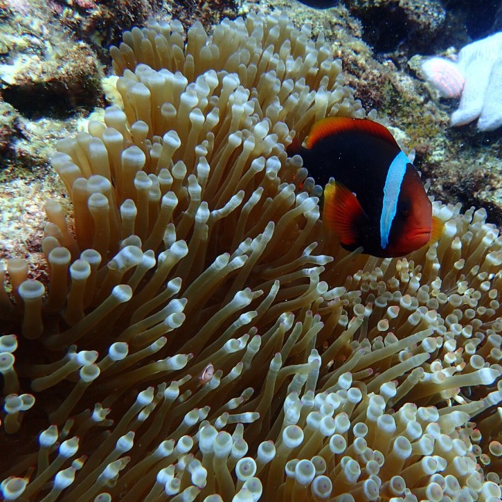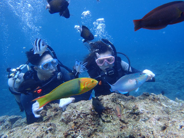 旅程中有個小小的插曲,就是因為魚小姐太受海洋生物的喜愛。在浮潛時被海膽刺到,流出紫色的血,幸好只是小小的刺到沒有大礙。另外,走到海裡時魚小姐突然覺得腳一陣刺痛,原來是被水母要了,腳馬上紅腫。好險飯店的潛水教練說是小水母咬的傷口不大,他用醋酸幫我處理,不然會留下大大的疤痕。大家開心之餘,也要小心唷!